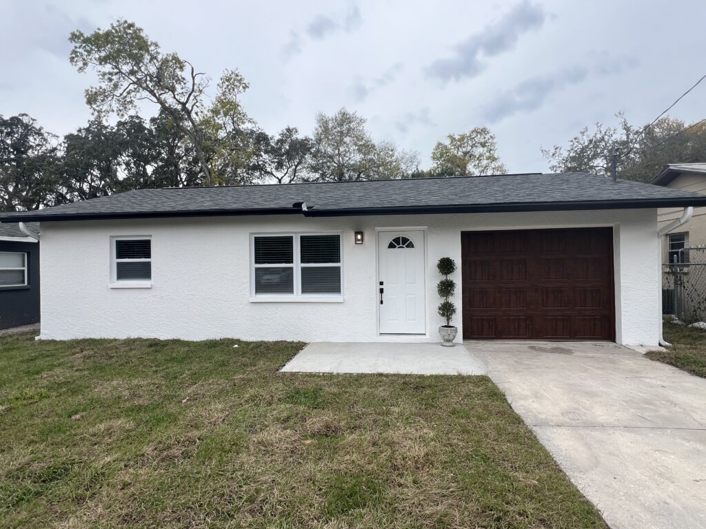 In the end this house had a new roof, new A/C, new windows, flooring, a kitchen and bathrooms, LED lighting, landscaping and a lawn, lot cleared up to look like a home and painted inside and out.